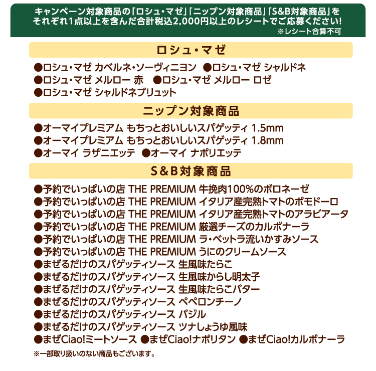 ●レシート有効期間中に対象チェーンでお買い上げいただいたレシートでのみ、ご応募いただけます。
