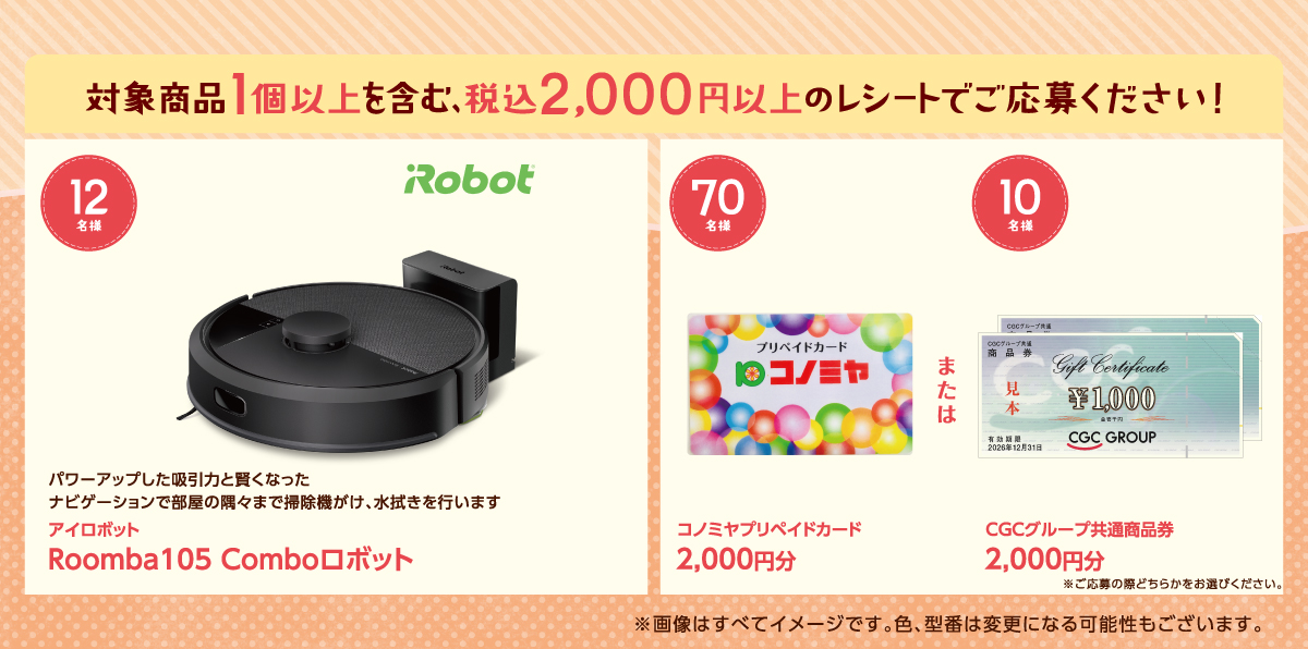 • ●「購入店舗名」「購入日」「対象商品名」「お買い上げ合計金額」が分かるようにレシートを撮影してください。