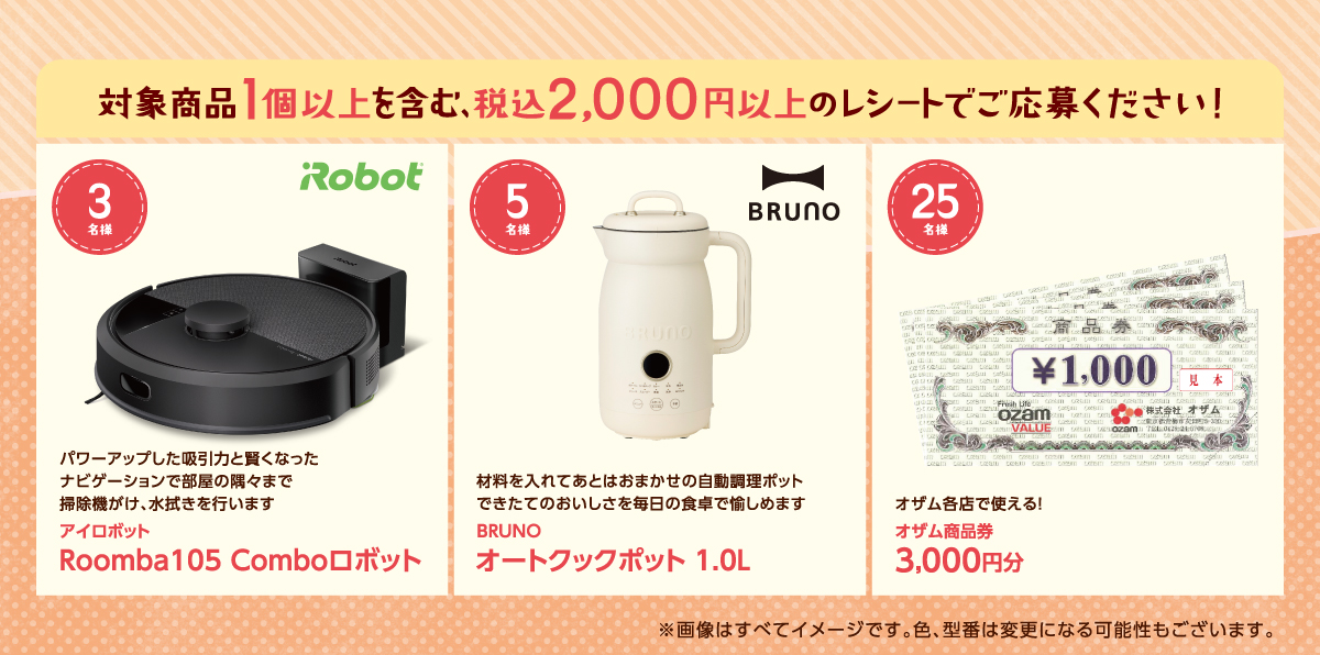 • ●お一人様何口でもご応募いただけますが、1回のご応募につき3口(レシート画像3枚)までのご応募とさせていただきます。