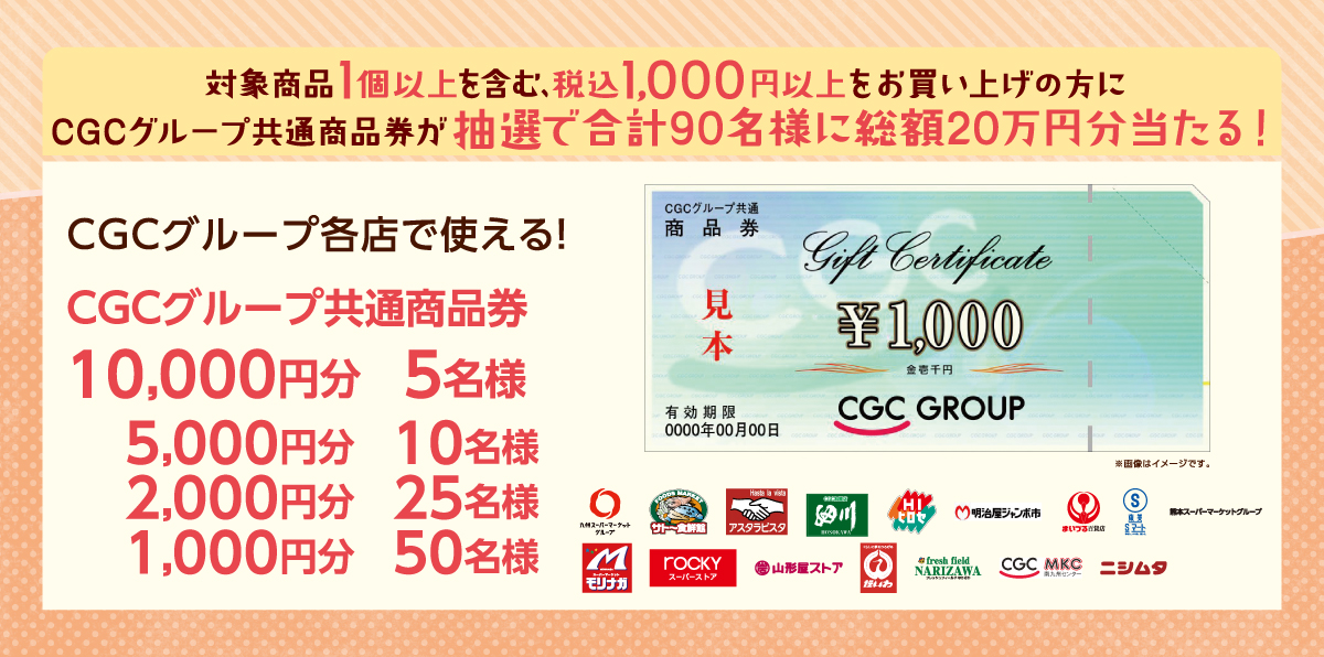 • ●レシート有効期間中に対象チェーンでお買い上げいただいたレシートでのみ、ご応募いただけます。