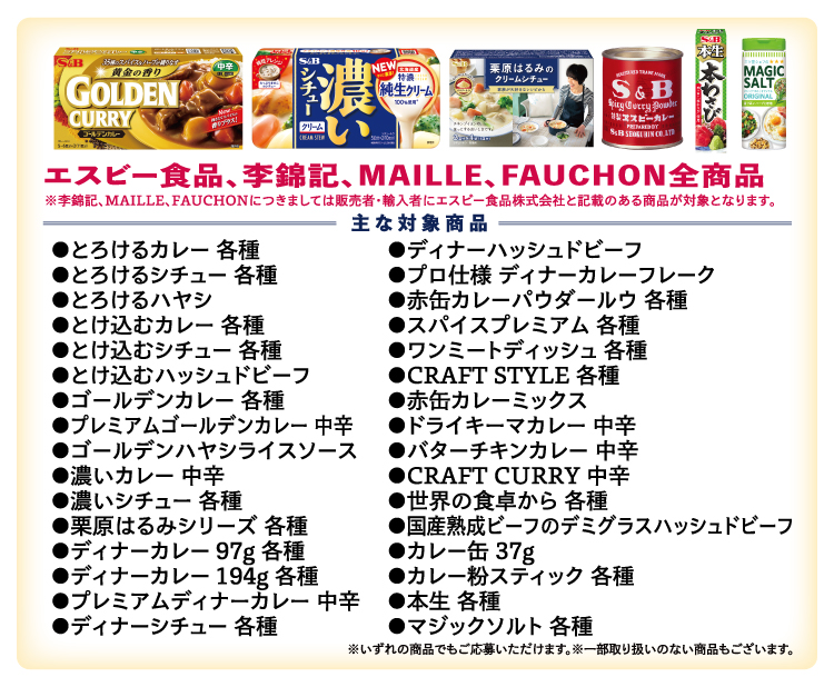 ●エスビー食品株式会社社員および、本キャンペーン関係者の応募は受け付けられません。