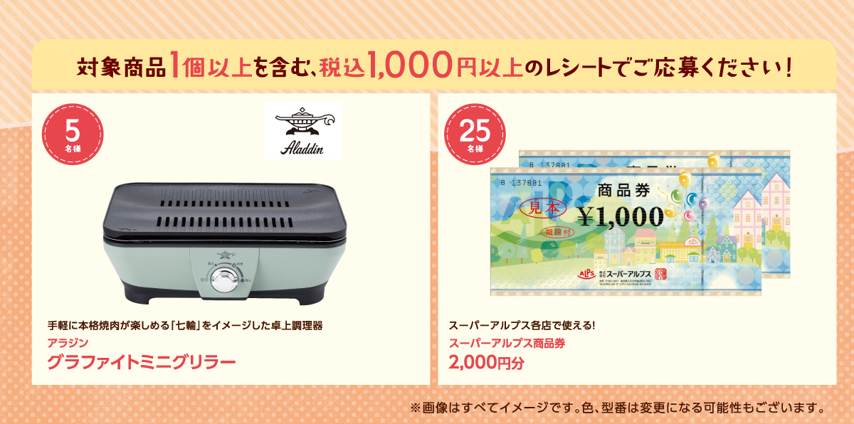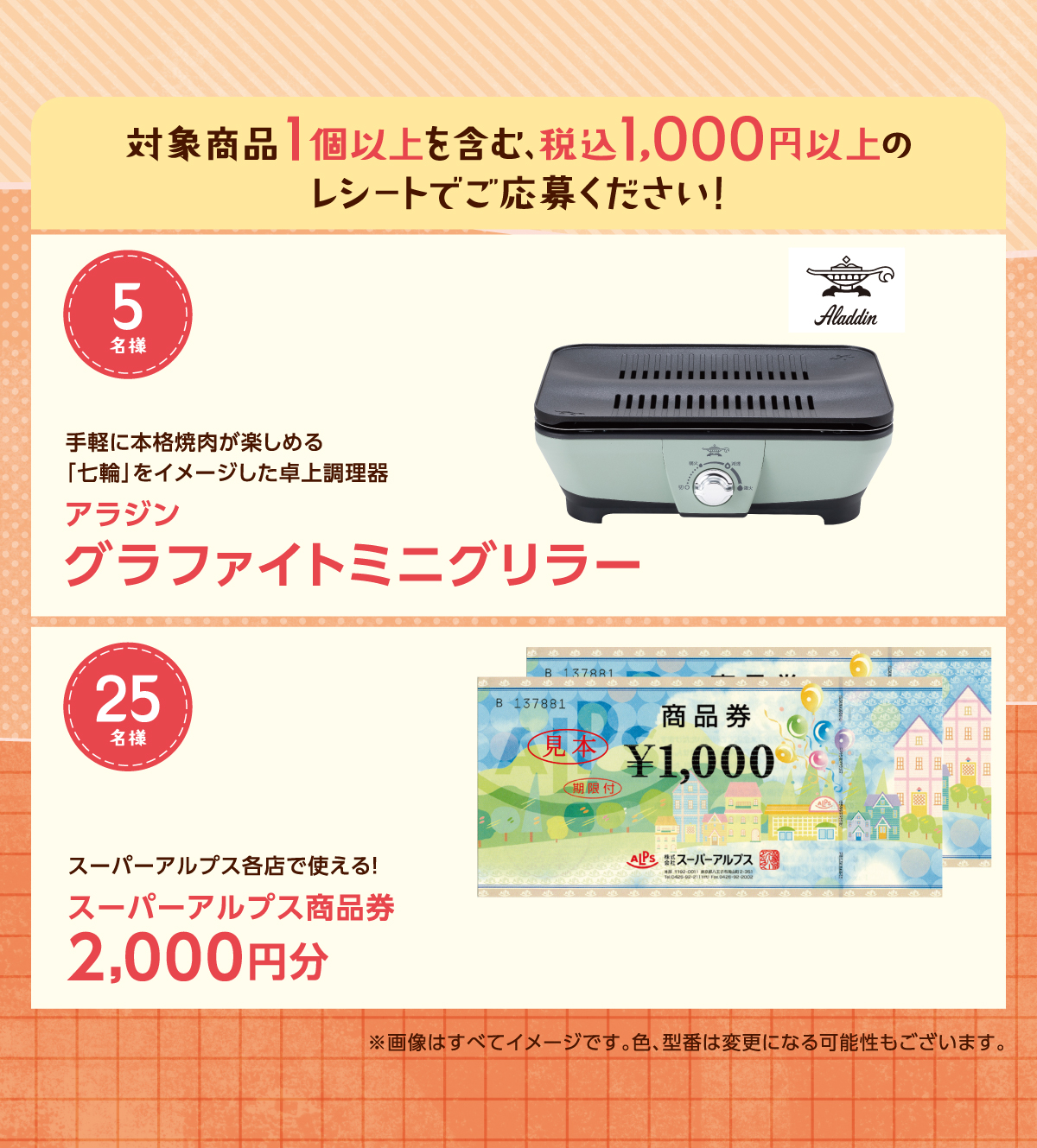 • ●一度ご応募されたレシートではご応募いただけません。2回目以降のご応募は無効となります。
