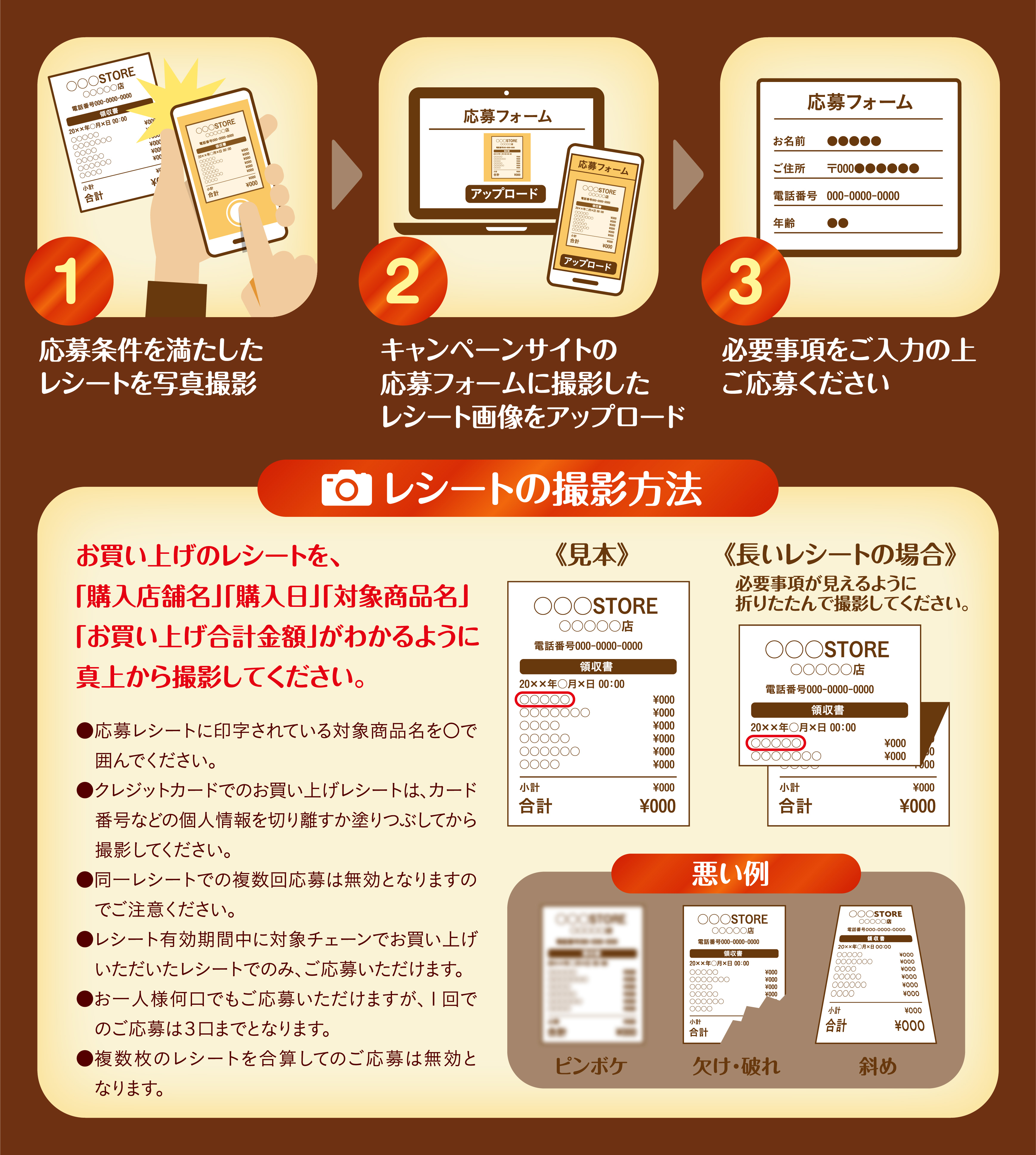 ●レシートの画像が不明瞭などの場合、ご応募は無効となります。