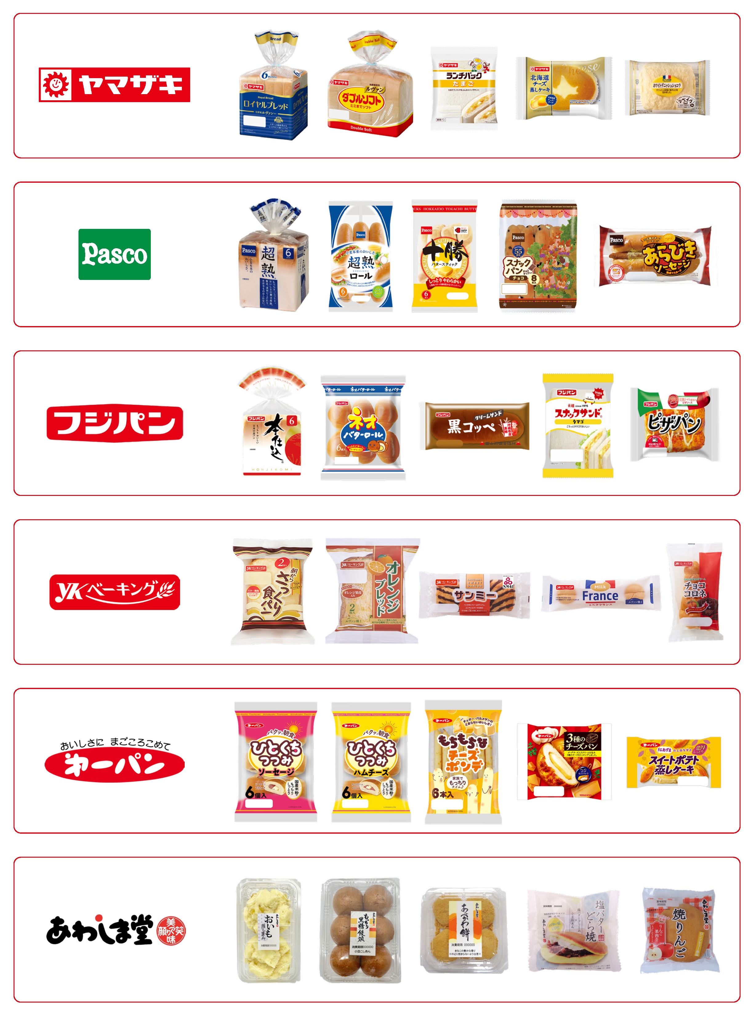 イオンリテール(株)、イオン東北(株)対象店舗で販売している以下協賛企業6社(山崎製パン株式会社、敷島製パン株式会社(パスコ)、フジパン株式会社、第一屋製パン株式会社、株式会社YKベーキングカンパニー、株式会社あわしま堂)のパン・和洋菓子(常温)全商品