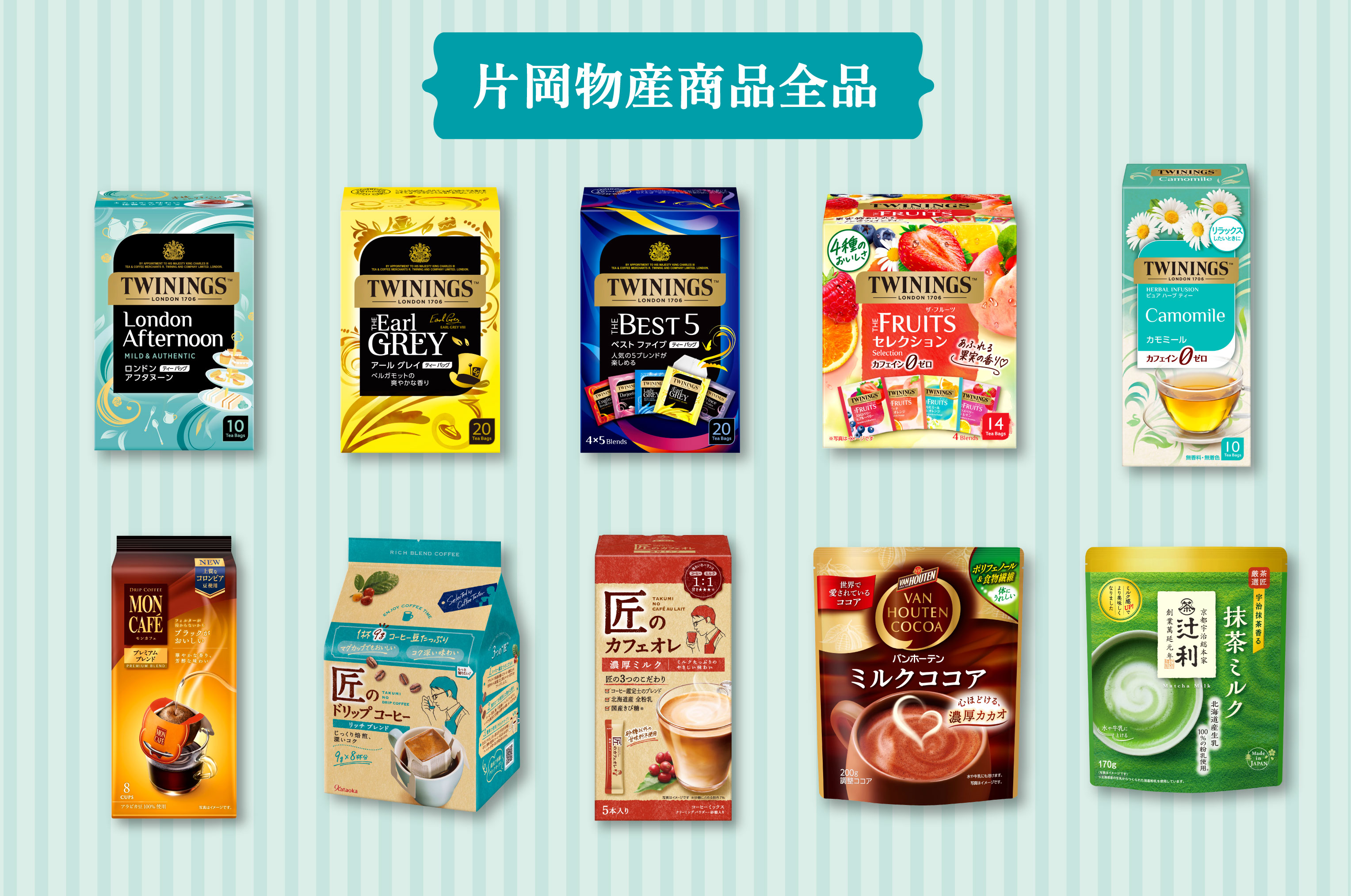 「トワイニング」ブランド全商品、「バンホーテン」ブランド全商品、「辻󠄀利」ブランド全商品、「モンカフェ」ブランド全商品、「匠のドリップコーヒー」ブランド全商品、「匠のカフェオレ」ブランド全商品