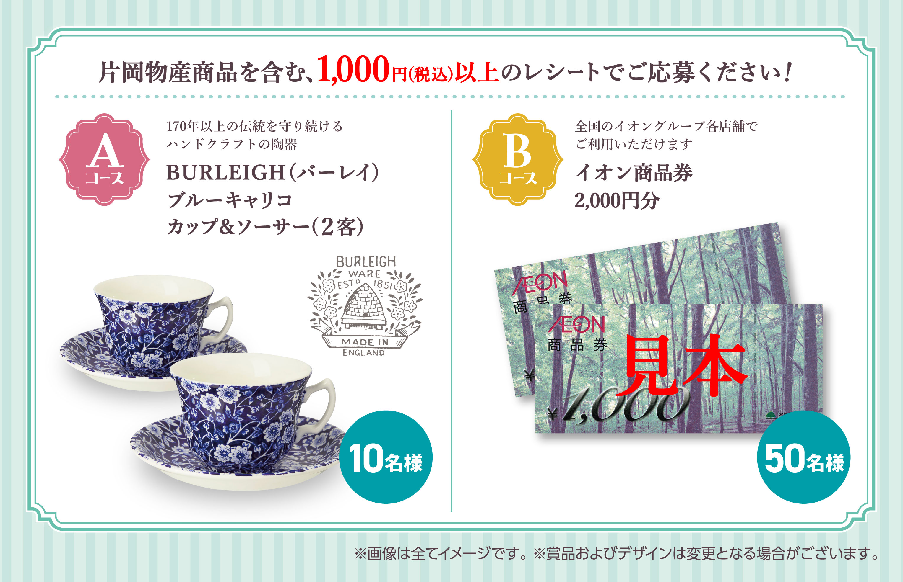 マックスバリュ東海でお買い上げいただいた、片岡物産商品を含む1,000円(税込)以上のレシートで応募できます。