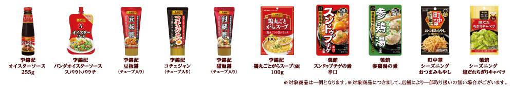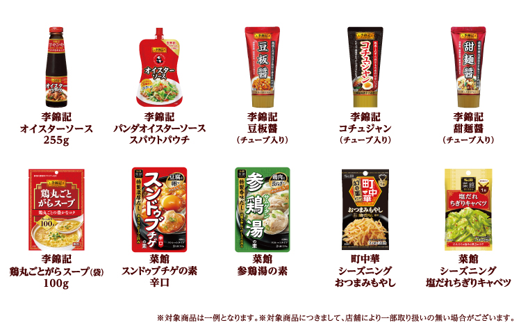 李錦記シリーズ全品とエスビー町中華シリーズ、菜館シリーズ全品です。