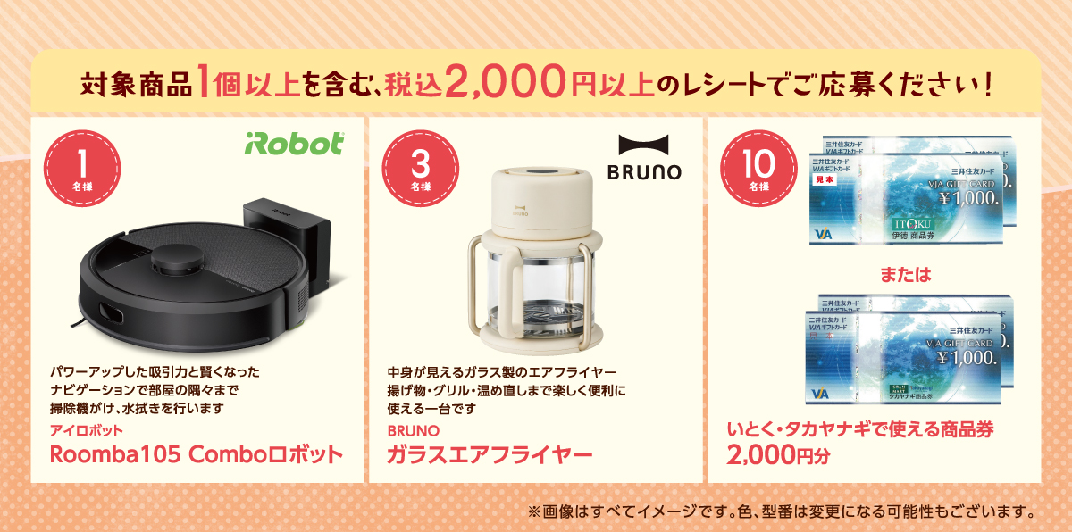 • ●お一人様何口でもご応募いただけますが、1回のご応募につき3口(レシート画像3枚)までのご応募とさせていただきます。