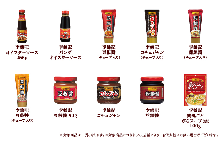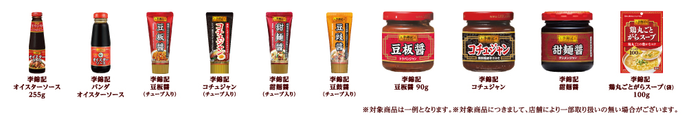 李錦記シリーズ全品とエスビー町中華シリーズ、菜館シリーズ全品です。
