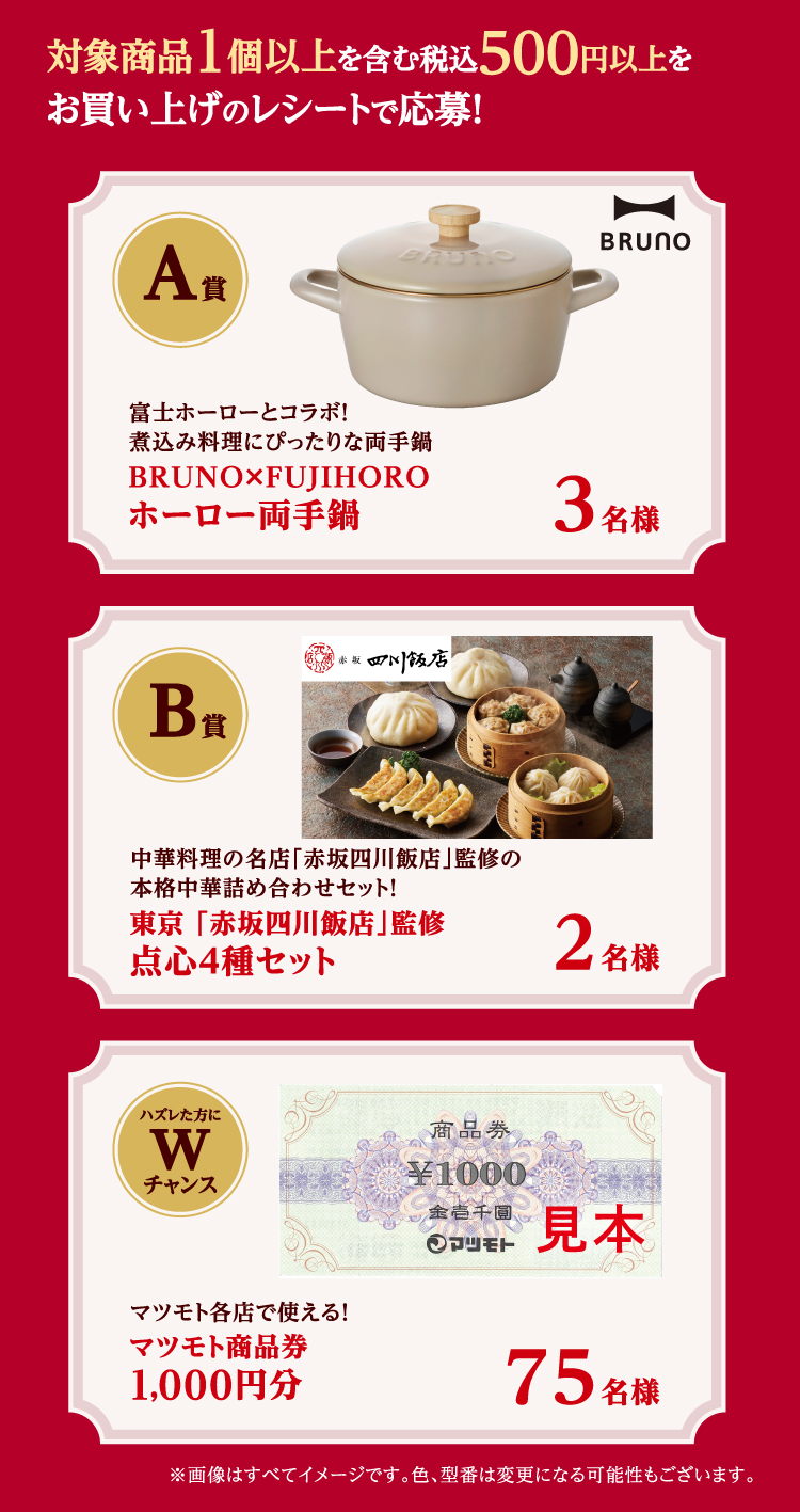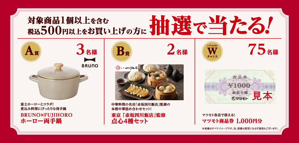 • ●複数口応募の場合でも、当選はお一人様1回とさせていただきます。