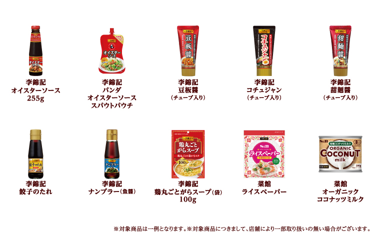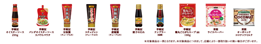 李錦記シリーズ全品とエスビー町中華シリーズ、菜館シリーズ全品です。