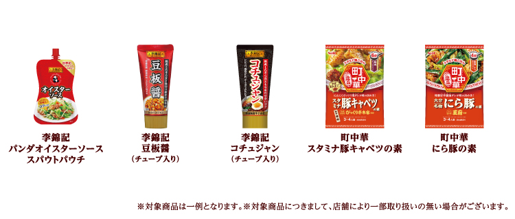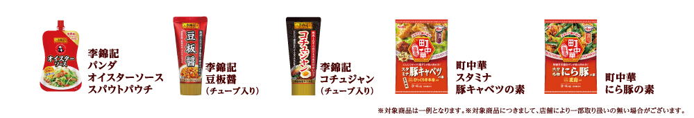 李錦記シリーズ全品とエスビー町中華シリーズ、菜館シリーズ全品です。