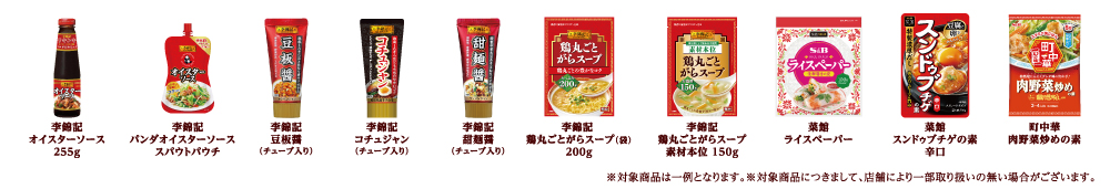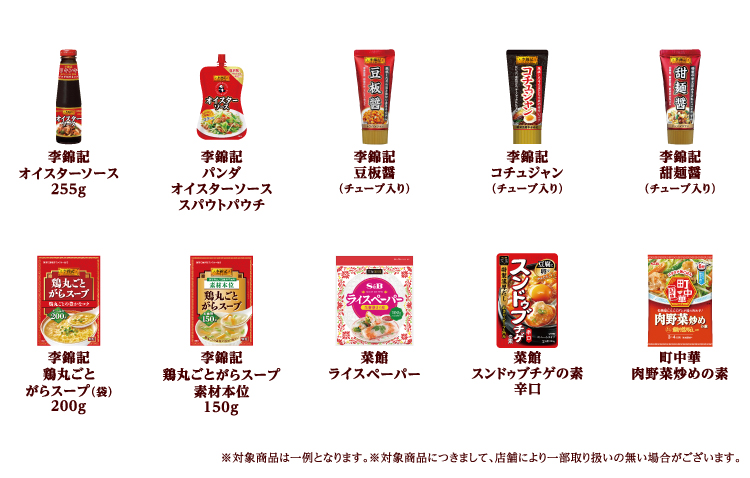 李錦記シリーズ全品とエスビー町中華シリーズ、菜館シリーズ全品です。