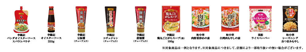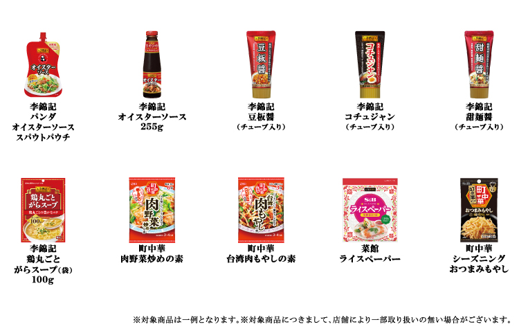 李錦記シリーズ全品とエスビー町中華シリーズ、菜館シリーズ全品です。