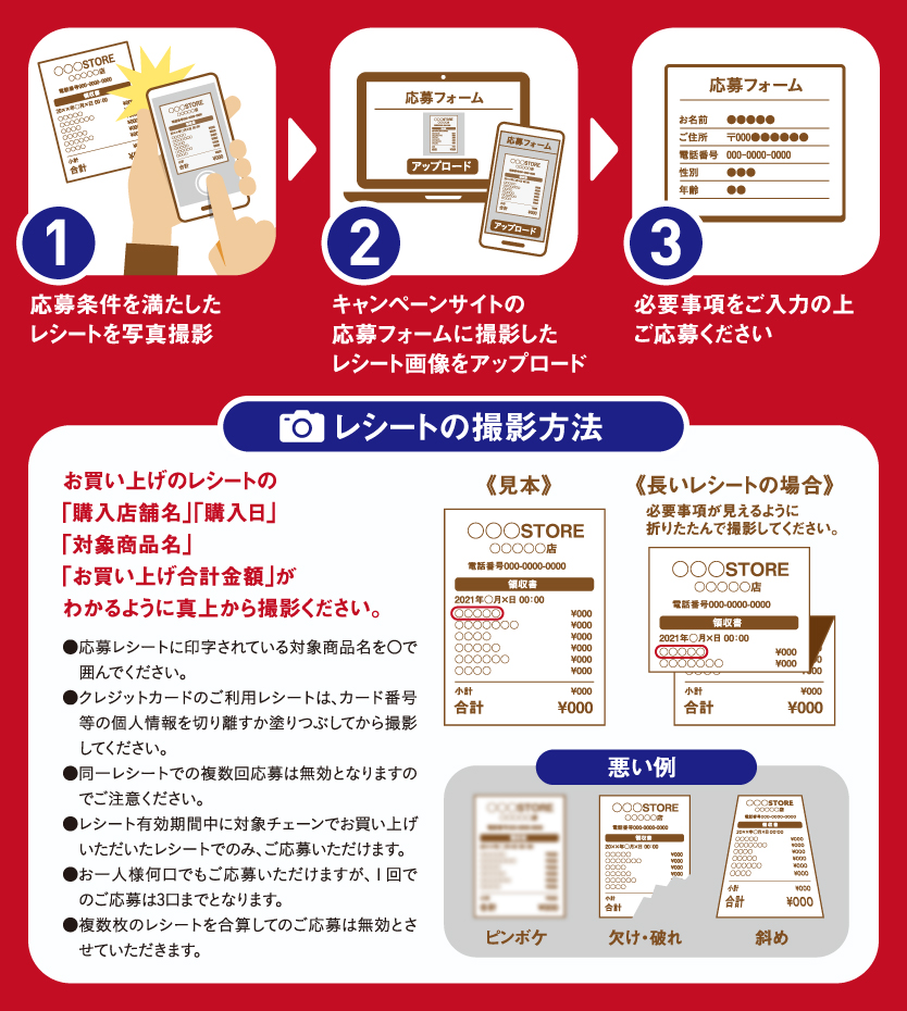 本キャンペーンにてご応募いただいたお客様の個人情報(以下、「当該情報」といいます)は、エスビー食品株式会社が「プライバシーポリシー」に従って厳重に管理致します。当該情報は、お客様からのお問い合わせ等に対する回答のご連絡、賞品の当選通知及び賞品発送に伴うご連絡に必要な範囲で利用させていただきます。また、景品表示法等の法令の規制により、本キャンペーンと同時期に当社又は第三者が実施するキャンペーンの事務局と本キャンペーンの当選者情報を確認・参照することがございます。予めご了承ください。【注意事項】